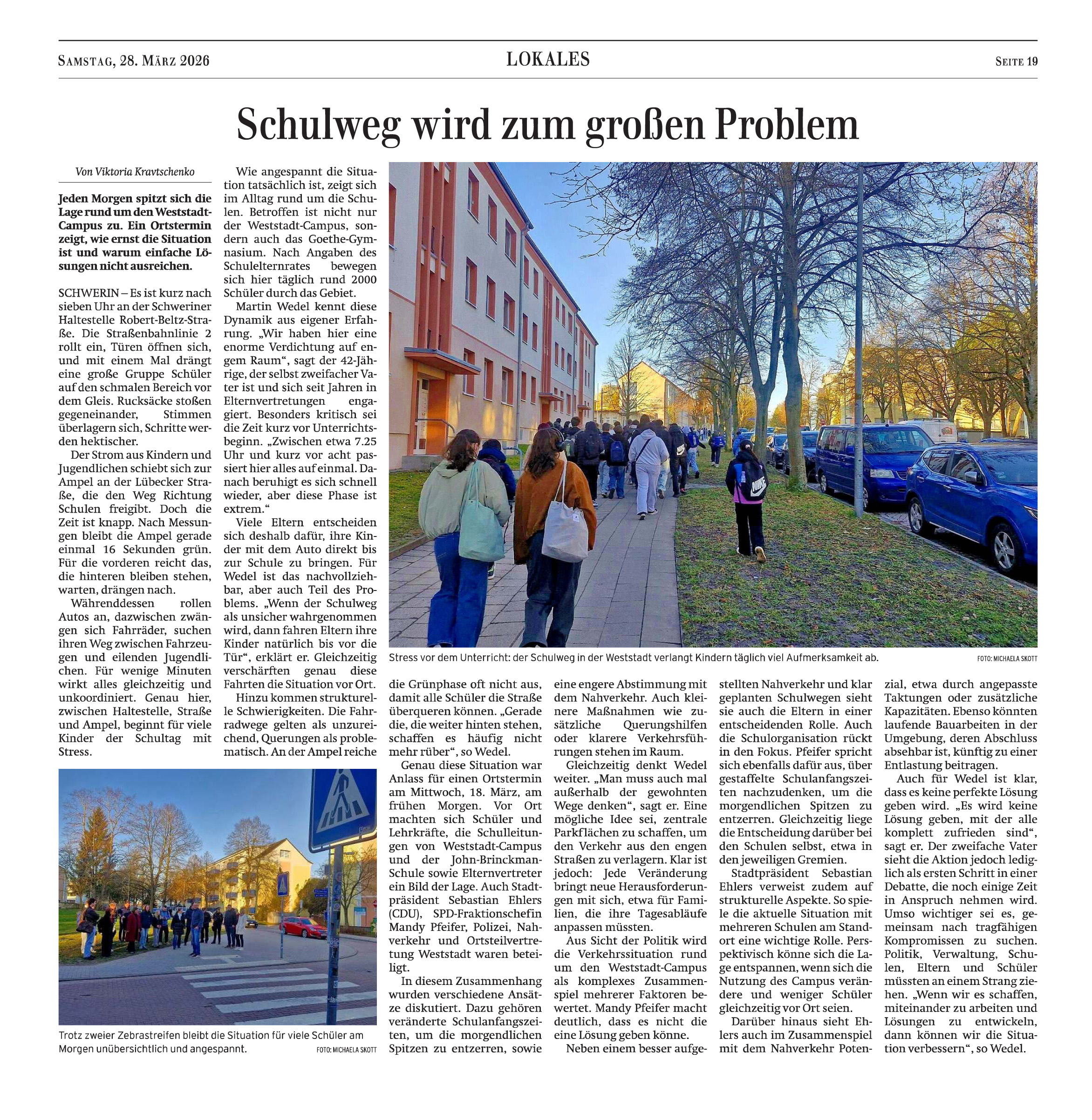 Wir sind mitten in der Unterschriftensammlung und damit sehr nah dran an den Wünschen der Schweriner. Was für viele Schweriner*innen ebenfalls gar nicht geht, sind diese drei Straßen: der Obotritenring und die Straße Vor dem Wittenburger Tor, gleich danach folgt die Lübecker Straße. Viele haben schlicht Angst, dort zu fahren. Deshalb wollen wir, dass alle Verkehrsteilnehmer ihre eigenen Wege bekommen. Fußgänger haben Wege, die vom Radverkehr getrennt sind. Und Radwege sind baulich vom Autoverkehr so getrennt, dass sie von Kfz weder befahren noch zugeparkt werden können. Wenn es gute Radwege gibt, fahren viel mehr Menschen mit dem Fahrrad statt mit dem Auto. Das ist gut für uns alle.