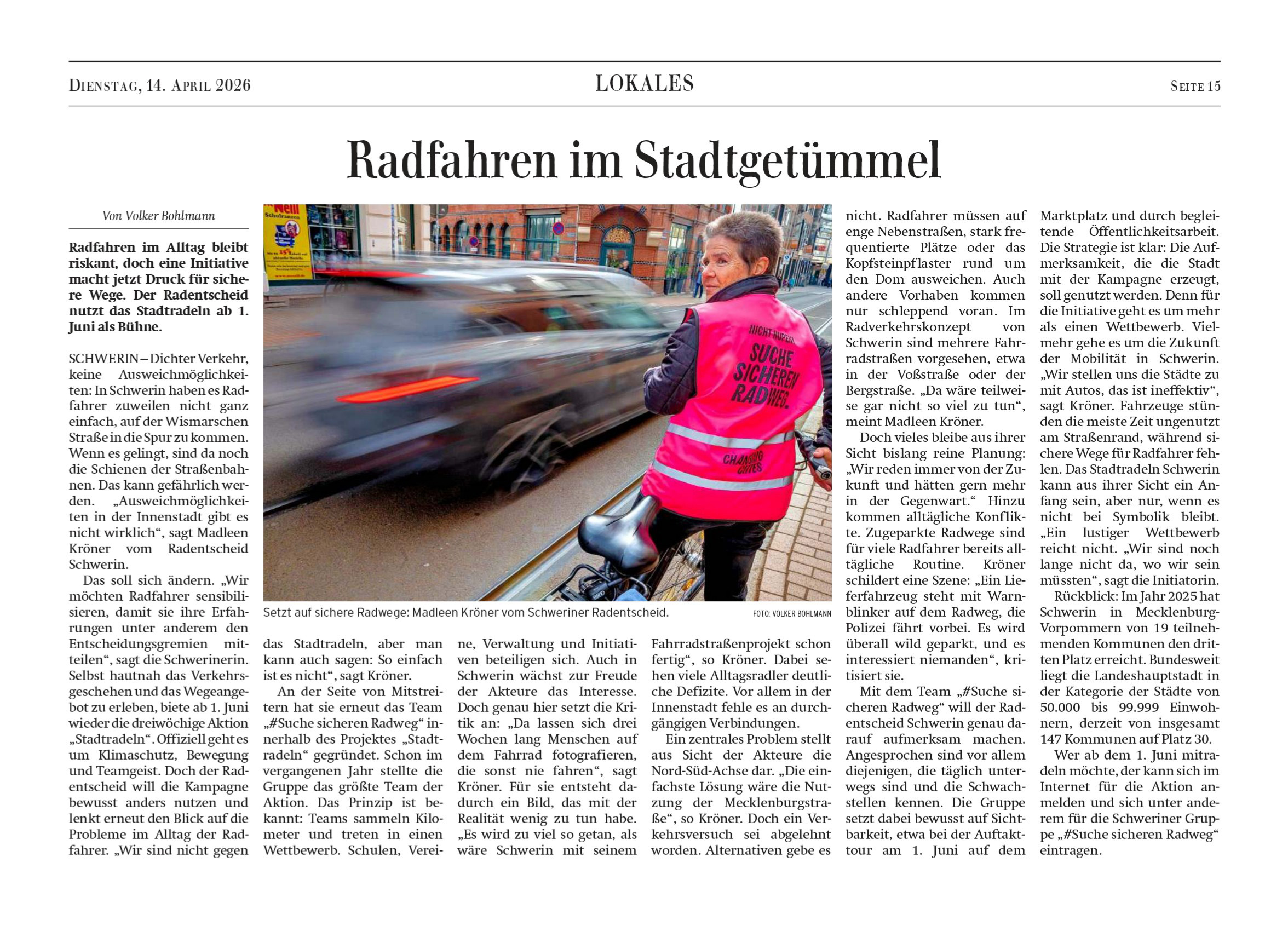 Diese Fotos können für die Berichterstattung über den Radentscheid Schwerin verwendet werden.