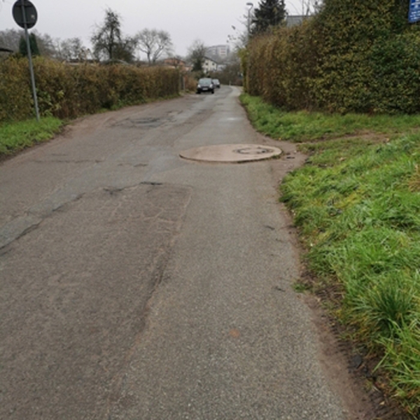 Hier fehlt ein Teilstück des neuen Radwegs vom Alten Friedhof nach Lankow. Davor und danach ist er gut gemacht, das fehlende Stück sollte dringend saniert werden.