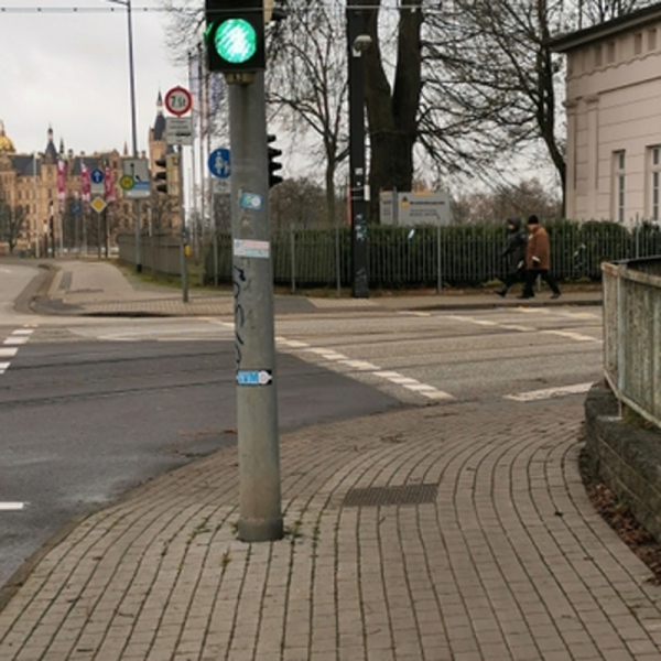 Auch hier steht wie an anderen Stellen der Mast auf dem viel zu schmalen gemeinsamen Geh- und Radweg.