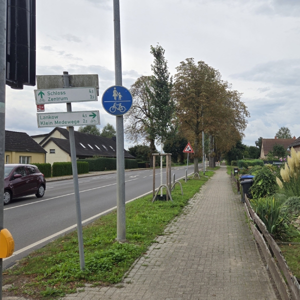 Dieser viel zu schmale gemeinsame Geh- und Radweg ist in beide Richtungen benutzungspflichtig! Die andere Straßenseite hat keinen - das ist eine Zumutung für Fußgänger und Radfahrer!