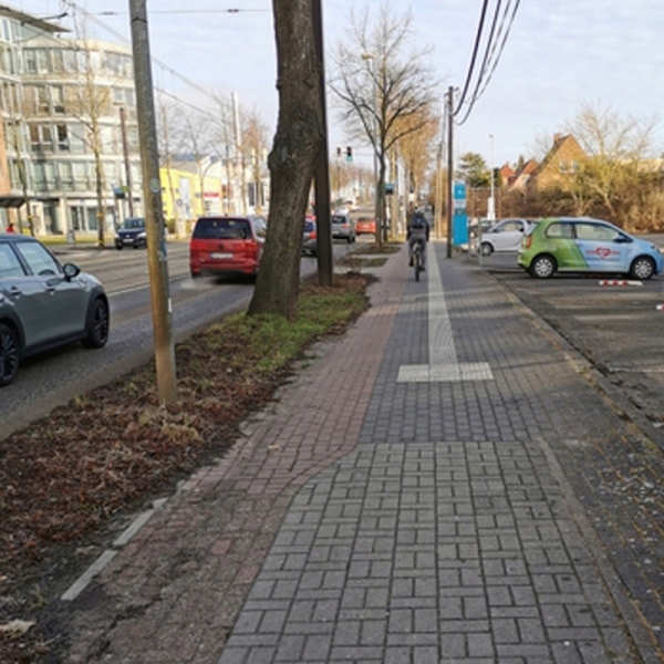 Wie an vielen Stellen in der Wismarschen Straße stadtauswärts ist es hier viel zu eng für den gemeinsamen Geh- und Radweg und eine Haltestelle! Das ist richtig gefährlich für alle Beteiligten. Vor allem der Wartebereich sollte nicht gleichzeitig Geh- und Radweg sein.