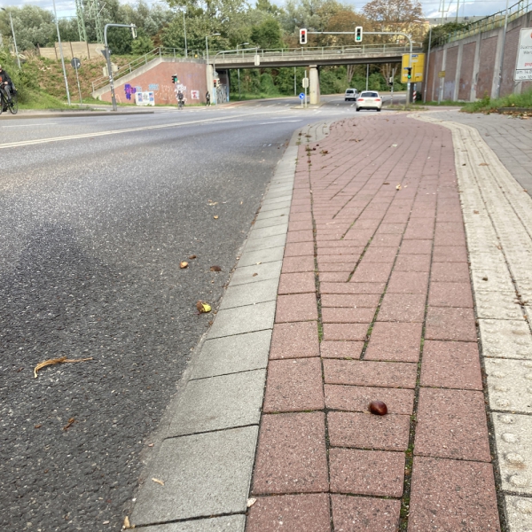 Ursprünglicher Eintrag: An dieser Stelle gab es bereits einen schweren Unfall. Die Auffahrt auf den Radweg ist nicht ebenerdig, es ist eine Kante zu überfahren. Da die Kante nicht im rechten Winkel überfahren werden kann, besteht hier eine erhebliche Unfallgefahr.