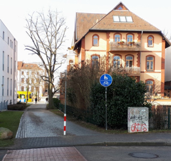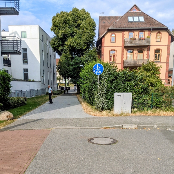 Der Bordstein war nur auf weniger als der Hälfte der Einmündung abgesenkt. Das ist inzwischen korrigiert worden.