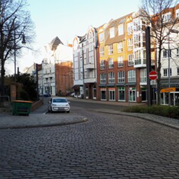 Hier dürfen Radler entgegen der Einbahnstraße fahren, das ist positiv. Aber sehr oft nehmen Autofahrer dies nicht wahr, drängen Radler ab und fahren für die beengten Verhältnisse zu schnell. Hier könnte die Beschilderung deutlich in die Blickrichtung der Autofahrer gedreht werden.