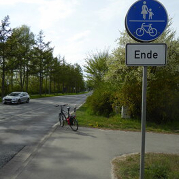 Der gemeinsame Geh- und Radweg endet ohne Vorwarnung und ohne Alternative.