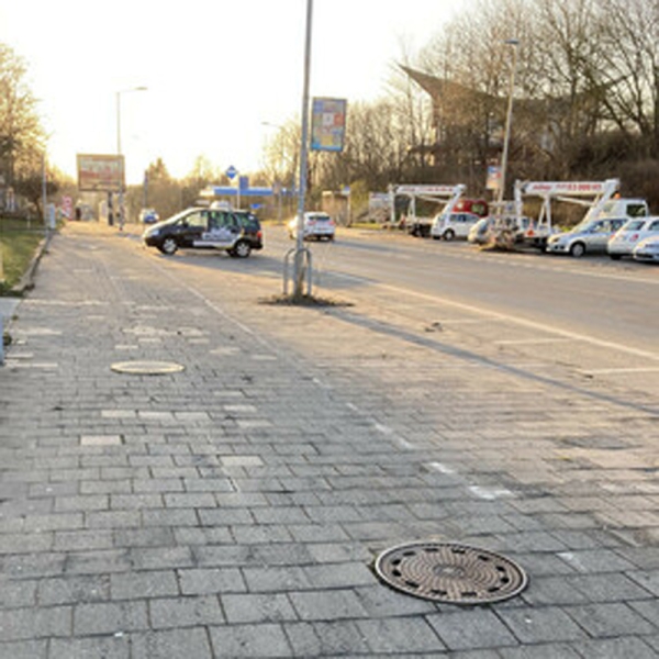 Die Markierungen auf diesem gemeinsamen Geh- und Radweg sind kaum noch sichtbar, sie sollten dringend erneuert werden. Dieser Bereich wird von vielen Schülern genutzt. Das Querparken sollte auf beiden Seiten in Längsparken geändert werden, da Querparken grundsätzlich gefährlich ist. Außerdem ragen Immer wieder PKW und Transporter mit Überlänge auf den Geh- und Radweg.
