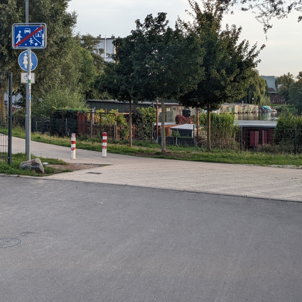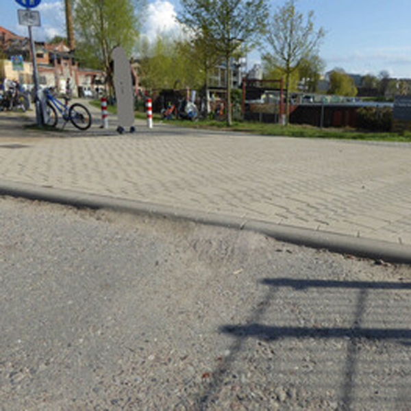 Ursprünglicher Eintrag: Der Übergang vom Radweg zur Straße ist zu hoch. Wenn die Straße irgendwann mal fertig werden sollte, passt es dann vielleicht. Solange würde ein Provisorium Abhilfe schaffen.