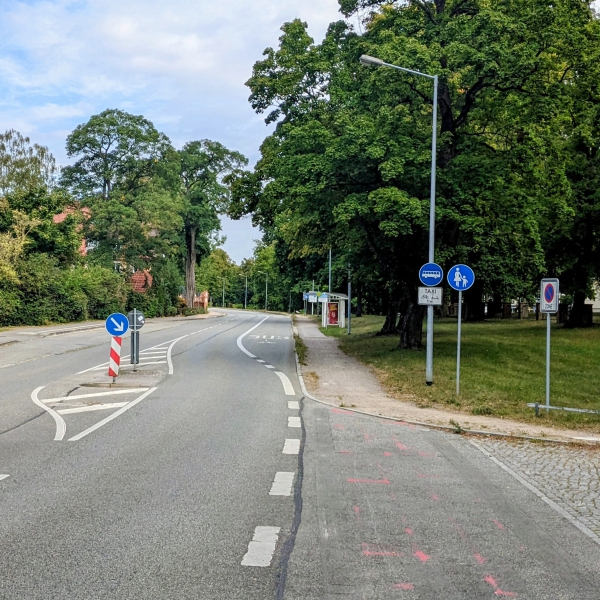 2025: So wie vorgeschlagen wurde das umgesetzt. Der Gehweg ist jetzt den Fußgängern vorbehalten.