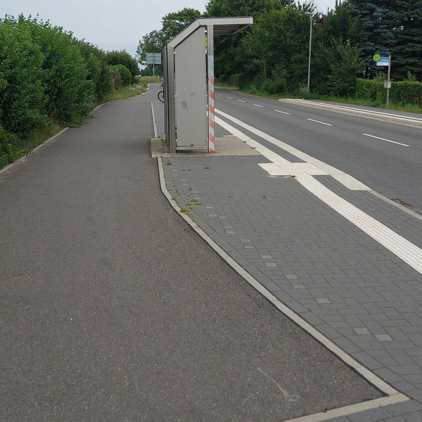 2025: Die Fläche wurde wie vorgeschlagen erweitert und der Radweg wird jetzt hinter der Bushaltestelle geführt.
