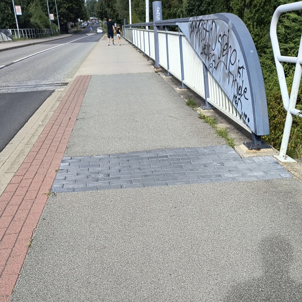 2025: Diese Stelle wurde mit Pflaster repariert. 20 Meter weiter gibt es jetzt den nächsten Wurzelaufbruch (siehe N.13).