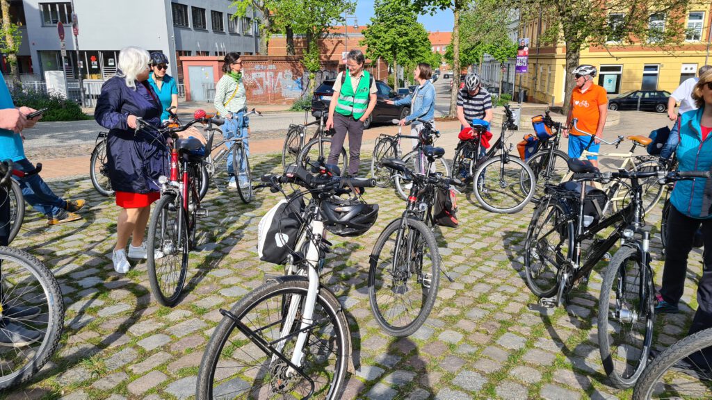 Die Parlamentarische Radtour von ADFC und Radentscheid richtet sich an die Stadtvertreter und die Verwaltung genauso wie an alle interessierten Schweriner. Beim letzten Mal sind wir die sogenannten „Problemhäufungsstellen“ aus dem Radentscheid-Projekt „Klimafreundlich mit dem Rad zur Schule“ angefahren. An den einzelnen Haltepunkten gab es dann durchaus kontroverse Diskussionen zum Zustand der Geh- und Radwege um die Schulen.